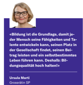 Ich freue mich sehr über meine gute Wiederwahl als Grossrätin am 29. März 2026 und danke herzlich für das grosse Vertrauen. Ich starte voller Motivation in die neue Legislatur. Neben meinen bisherigen Schwerpunkten Bildung, Finanzen, Gleichstellung und Soziales will ich gezielt die Demokratie fördern. Sie ist weltweit unter Druck geraten und braucht unsere ganze Aufmerksamkeit.