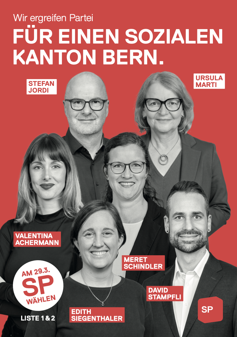 Die Wahlkampagne führen wir als Partei und als lokale Teams. Unsere Stärke ist der Zusammenhalt – nur so können wir als Minderheit eine aktive Rolle spielen. Jeder zusätzliche Sitz hilft, mehr für einen sozialen und fortschrittlichen Kanton Bern zu erreichen.